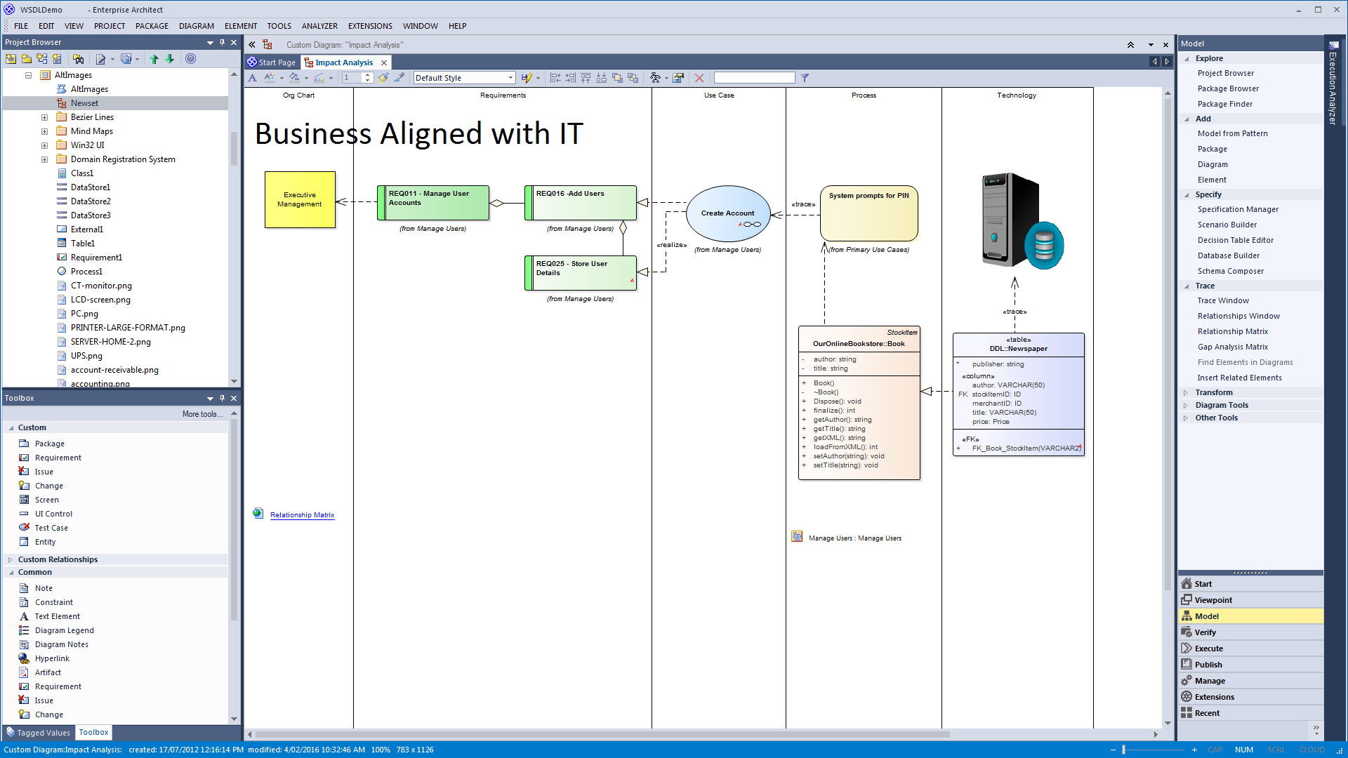 Identify business needs, translate them into IT requirements, and automate the production of the corresponding application specifications, enabling your organization to:
