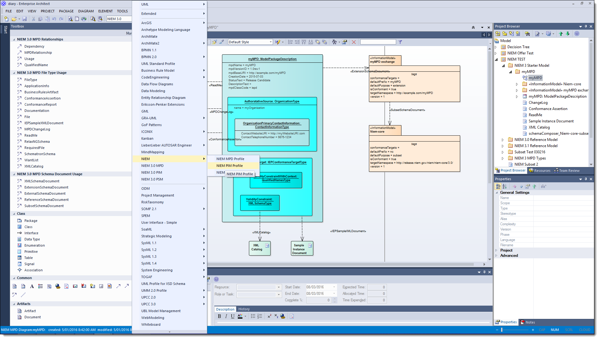 Enterprise Architect supports and implements the NIEM 3 UML profile based on the OMG NIEM-UML 1.1 Specification.