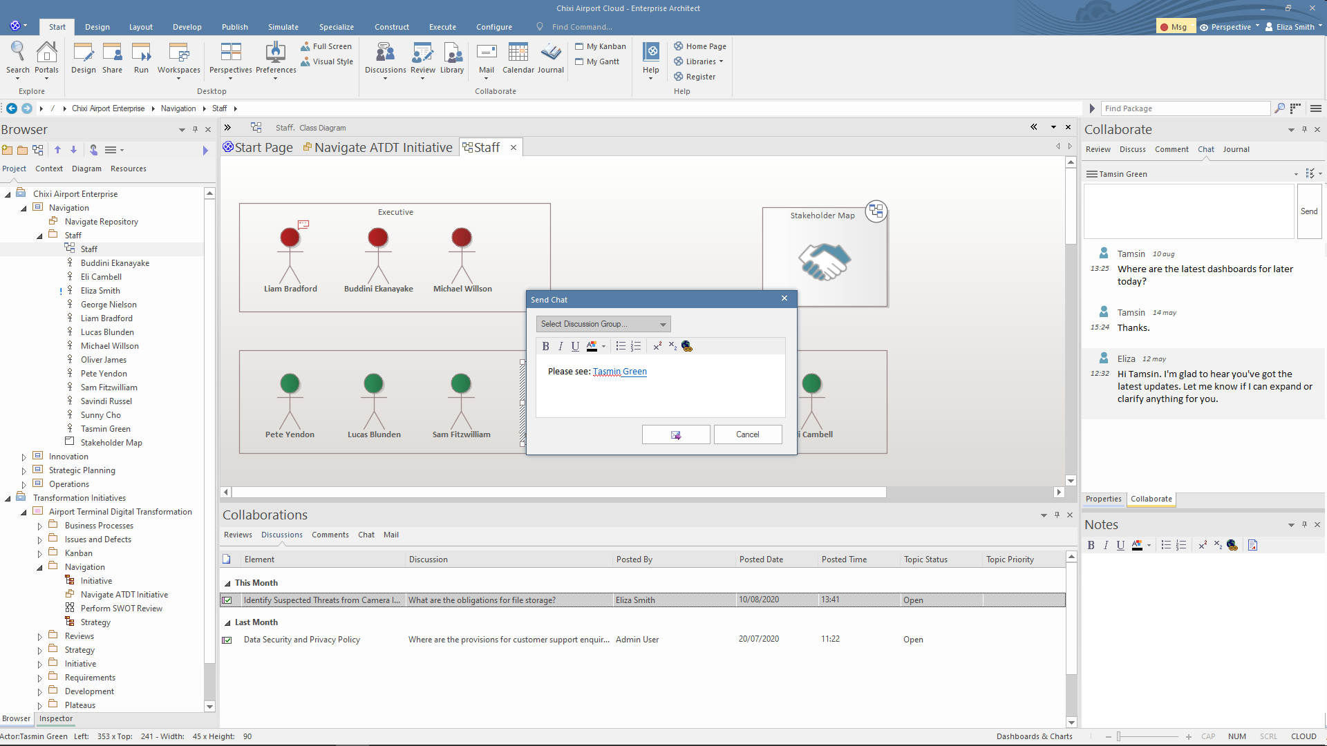 Collaborative tools such as Model Mail, Gantt Charts, Element Discussions, Gap Analysis and Team Review can be used to manage a project, co-ordinate resources and engage stakeholders in the development process.