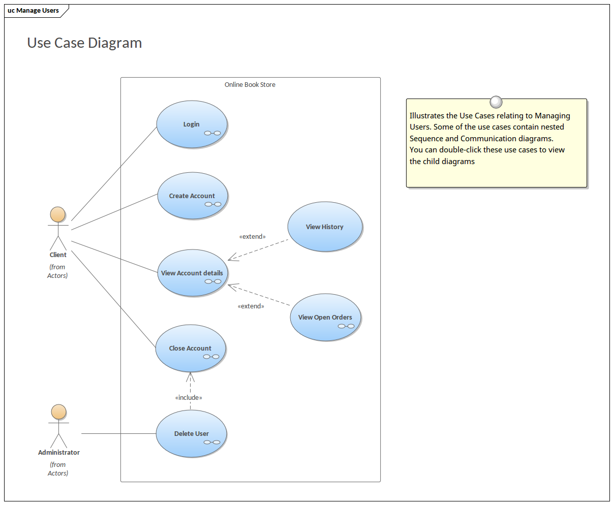 Develop Use Cases to model system behavior and analyze how users interact with a system to achieve real world goals. Use alternative images for model elements to create realistic, yet easy to understand system models.