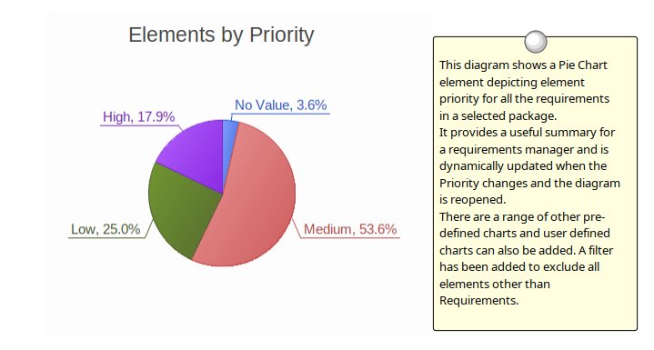 Dashboard diagrams display repository information in a visually compelling way such as charts and graphs depicting for example, Requirement Priorities.