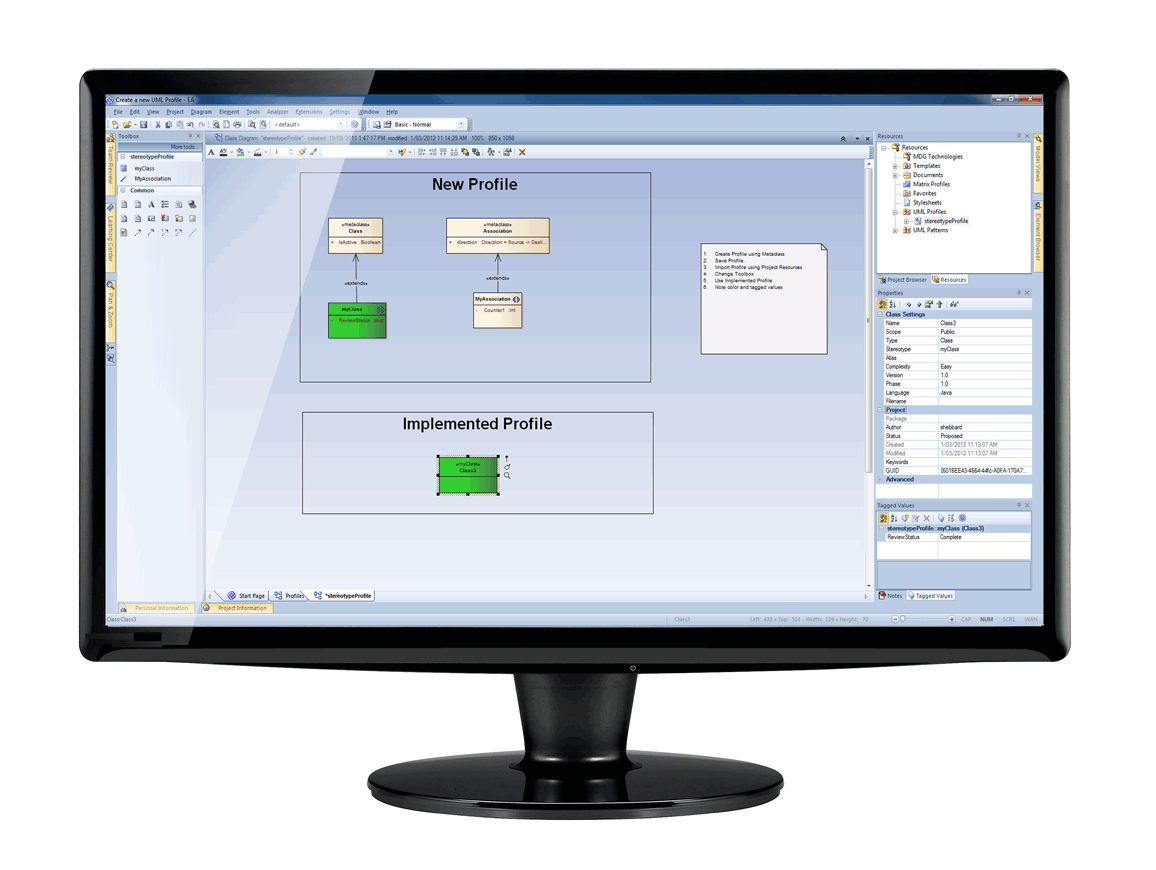 UML Profiles extend the UML language for constructing models in particular domains. Enterprise Architect has a generic UML Profile mechanism that allows users to create, share and use profiles as seamless extensions to the core modeling environment.