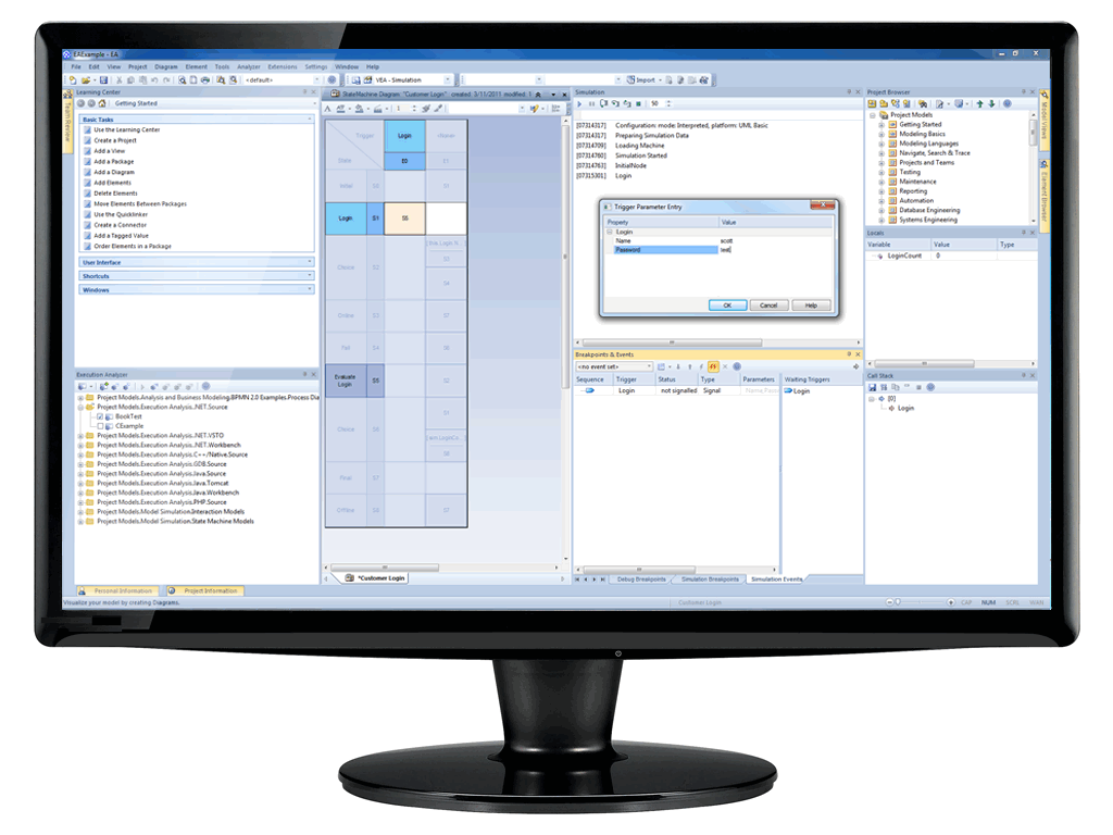 Enterprise Architect's model simulation brings your behavioral models and user interface designs to life with real-time execution.