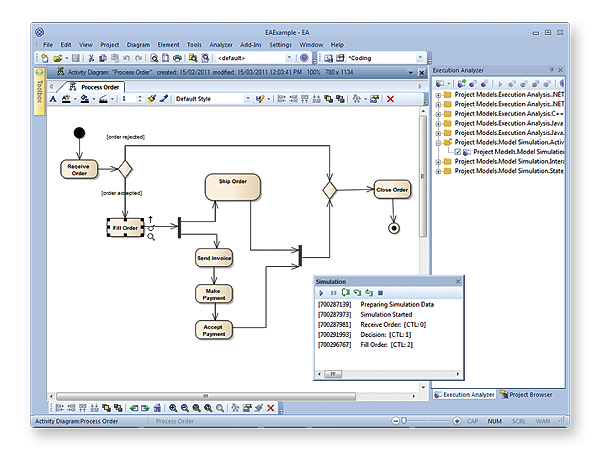 - Includes support for simulating constraint models with results graphing capabilities. Simulate the behavior of Activity, State, Business Process, User Interface and Interaction Models.