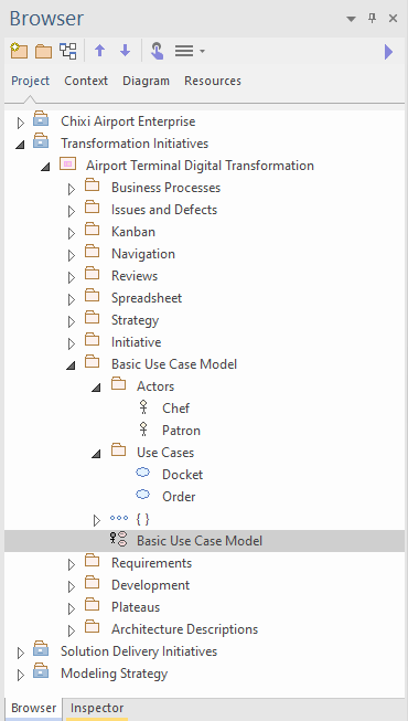 The Browser in Enterprise Architect displays model artifacts and features in a range of contexts to reflect the structure and contents of your model. Access functionality to create, select, reorganize, copy and manage model content.