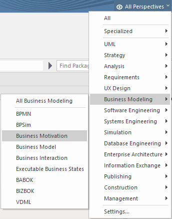 Use Perspectives to change modeling roles and refine Enterprise Architect's toolset and user interface to hide irrelevant features and only display the ones defined for that Perspective.
