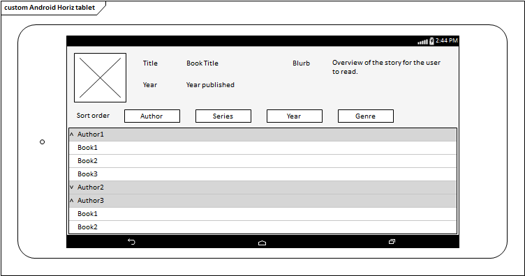 Generates a frame for the Android Tablet you are modeling. A prompt displays for you to specify portrait or landscape orientation. Child controls will be contained within the area of the screen. Tagged Values: