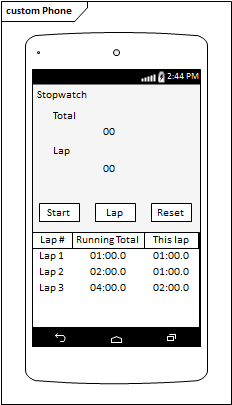 Generates a frame for the face of the Android Phone you are modeling. A prompt displays for you to specify portrait or landscape orientation. Child controls will be contained within the area of the screen. Tagged Values: