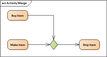 A merge node is a control node that brings together multiple alternate flows. It is not used to synchronize concurrent flows but to accept one among several alternate flows ... A merge node has multiple incoming edges and a single outgoing edge.
