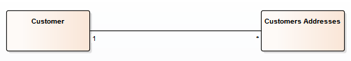 Using Entity-Relationship (ER) notation, we represent the data concepts 'Customers' and 'Customers Addresses' as Entities with a 1-to-many relationship between them. We can represent the exactly the same semantic information using UML Classes and Associations.