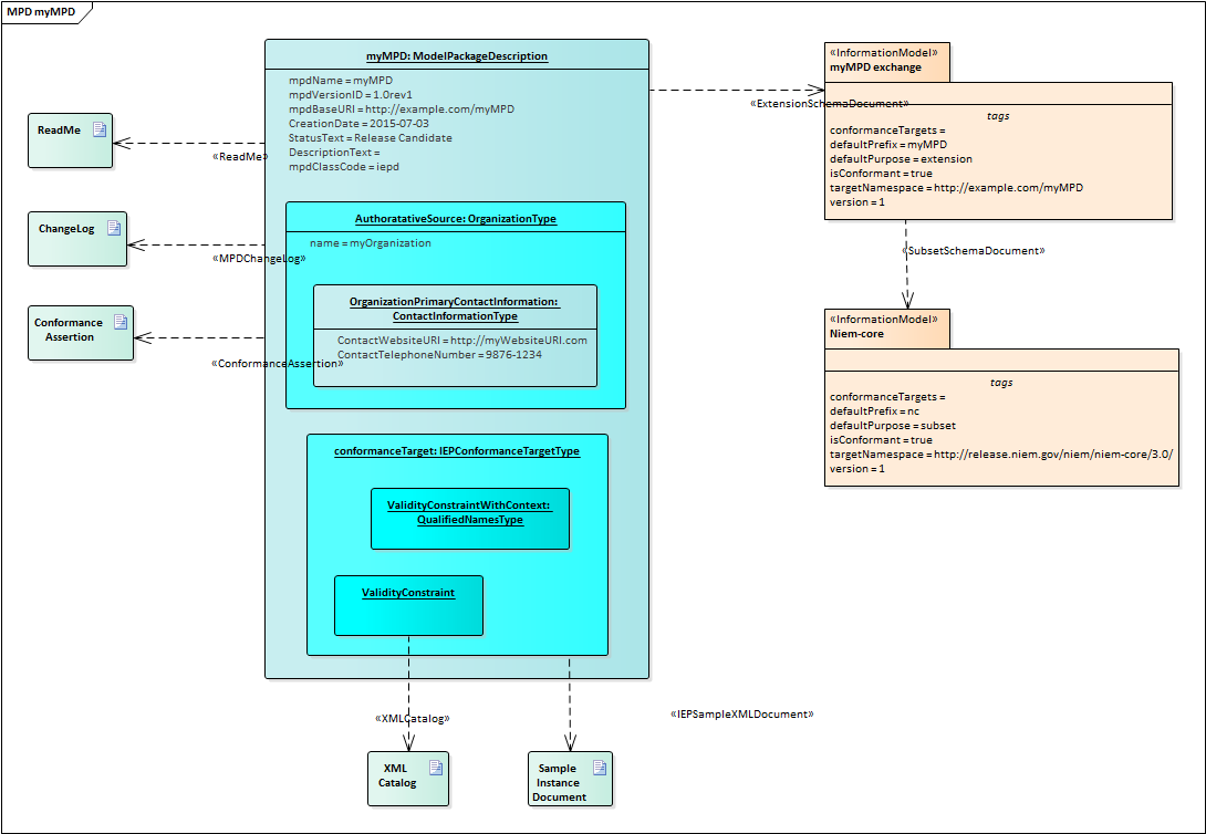 The instance and the relationships to <<InformationModel>> Packages and other artifacts, are used to drive the MPD Generation; without an MPD instance in your model, you will not be able to generate an MPD - Usually, you must have at least one of the NIEM 3 Reference Models imported into your project; the reference models contain UML representations of the Niem-core reference schema, as well as the many domain specific reference schemas, which must be available in your project if you intend to create subset schemas using Enterprise Architect's Schema Composer