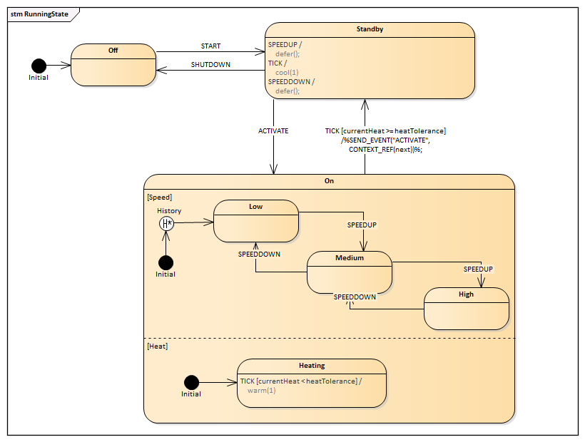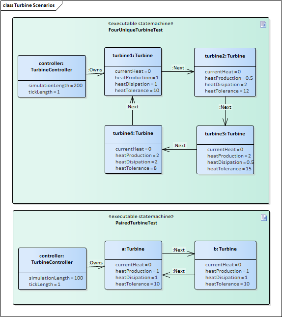 From the example diagrams above, we can create Executable State Machines as shown here.