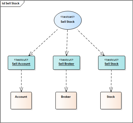 The Test Domain diagram is a dynamic medium where Testpoints are assembled to test Use Cases. Use Cases in a Test Domain diagram are provided in three different stereotypes: Test Cut, Test Set and Test Suite. Management of the domain is as easy as modeling on any diagram. The toolbox and shortcut menus provide access to any Test Domain Artifacts. In brief, Testpoints from multiple Classes are aggregated into Test Sets. Test Sets are then linked to form Test Suites. Both Test Cuts and Test Sets are re-usable assets. Linking the same Test Set to the one or more Test Suites is a matter of drawing connectors.