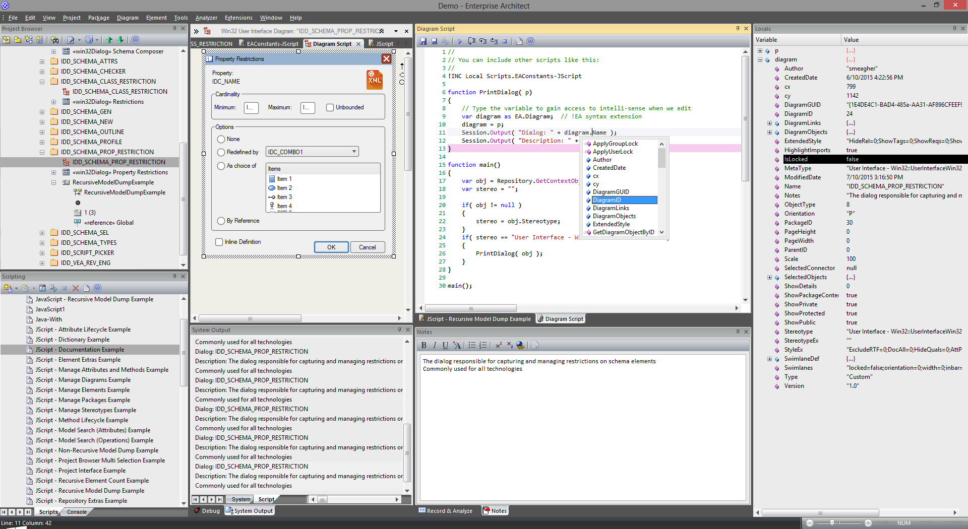 The automation interface is available from a scripting framework built into the Enterprise Architect user interface, through external scripting environments, or through Add-Ins that can be built in a wide range of programming languages.