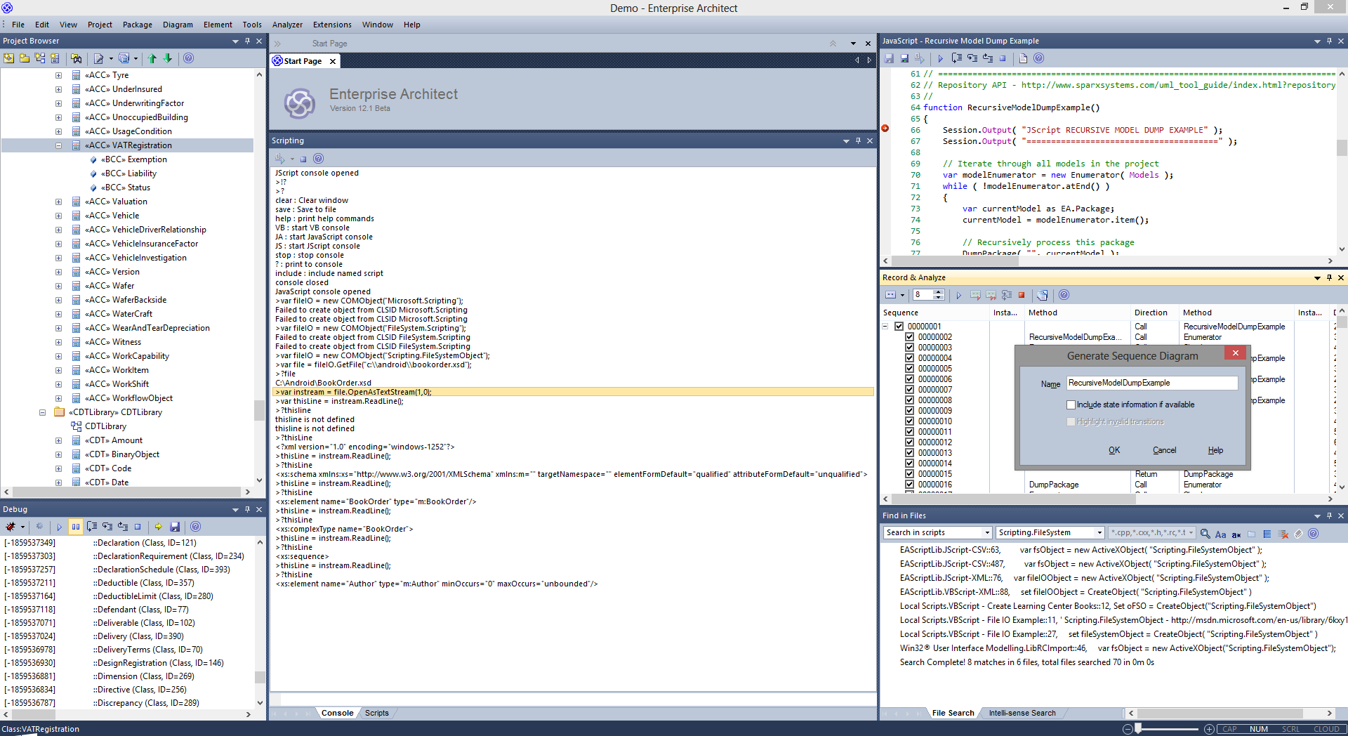 This collection of images illustrates the power of Enterprise Architect as an automation server of UML models |