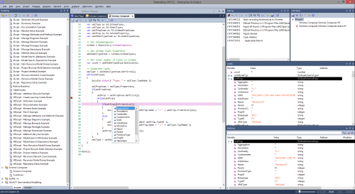 Enterprise Architect has a formidable set of built-in features for working with models, but it also provides a range of environments for accessing and manipulating the contents of a repository programmatically. This is an extremely powerfully facility that gives you unlimited ability to query and manipulate models, add to the Enterprise Architect user interface, generate reports, and even create support for new modeling languages. The Automation Interface gives you access to the Object Model, which is an easy to use and well defined set of objects with properties and methods that can be used to query and manipulate the repository and its contents, shielding the programmer from having to know the underlying repository data structures.