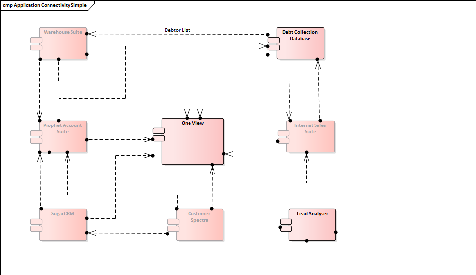 Application Services are not typically delivered by single applications, but are more commonly delivered by a concert of applications working together. The way these applications communicate to carry out the work described in the business capabilities is often built up over many years and can be quite complex. More often than not the individuals or the teams that devised the connectivity between the applications have moved on, and typically little documentation exists. If documentation does exist it is usually specific to a single application and does not describe the type of overview needed by an architect investigating the landscape. In this way the architect is often working like an archeologist trying to understand and describe how the landscape of applications came to be connected and how they currently communicate.
