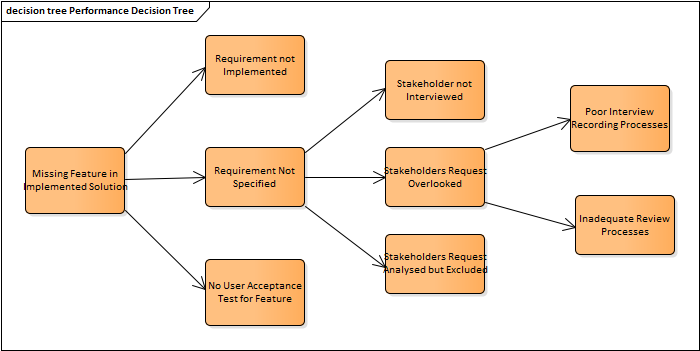Decision Trees are an effective way of graphically representing a number of options and provide a mechanism to investigate the possible outcomes and benefits of choosing those options. They can also assist the analyst to form a balanced picture of the risks and benefits associated with each possible course of action. They are a close cousin of the Decision Table but have the benefit of being graphical. Enterprise Architect has a purpose built diagram allowing complex decisions to be modeled and displayed including probabilities and uncertainty.