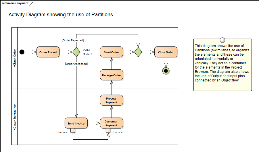 The Activity Diagram is one of the Unified Modeling Language (UML) Behavioral diagrams that can be used to model a process or algorithm as a sequence of steps. It is a more sophisticated version of its close cousin the Flowchart diagram. Activity diagrams can be used to model Business Processes as a UML alternative to the BPMN Business Process Diagram and have the same ability to create a hierarchy of Activities in the Project Browser.