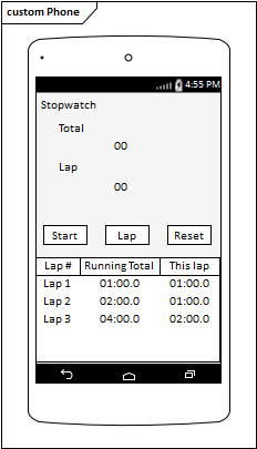 Generates a frame for the face of the Android Phone you are modeling. A prompt displays for you to specify portrait or landscape orientation. Child controls will be contained within the area of the screen. Tagged Values: