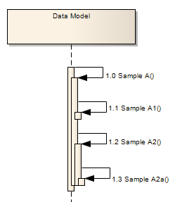 In this example, a few more self-messages have been added. The message Sample A2a is called from Sample A2, which in turn is called from Sample A (not Sample A1). Sample A1 is called from Sample A. |