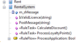 The operations stereotyped as RuleTask display in the Project Browser as shown: