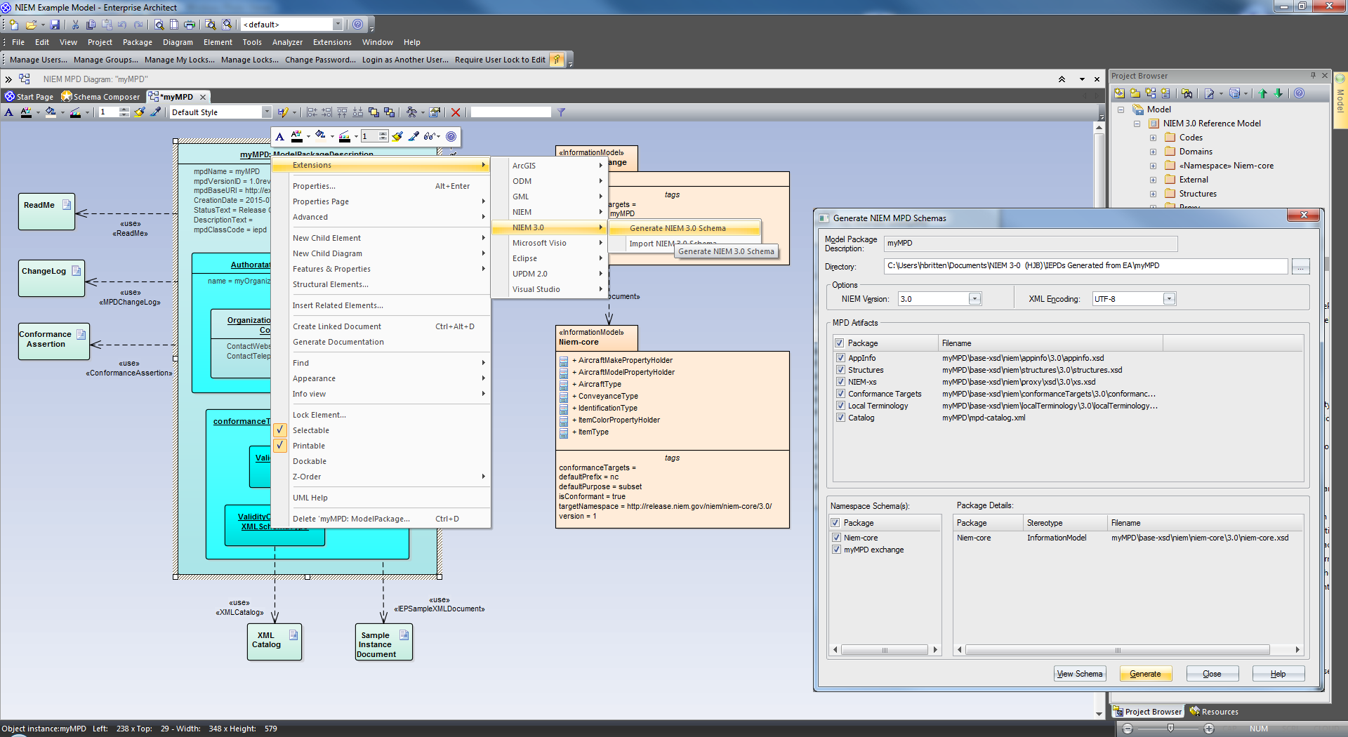 - Create PIM, PSM and Model Package Description (MPD) diagrams, using the NIEM Toolbox pages