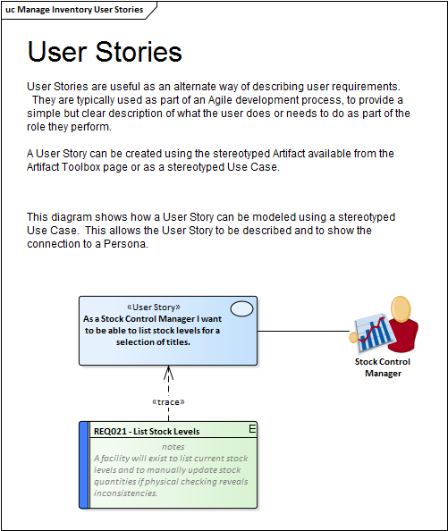 Enterprise Architect is an open platform that supports any requirements engineering process. The tool has a rich feature set and is highly configurable, and its flexible design means that whatever method is being used the modeler will find features to help. So whether the team is using Formal requirements, Use Cases, User Stories or Story-Boards in any combination, Enterprise Architect can be used to develop, manage and document the requirements. The implementation of the UML extension mechanisms means that any type of requirement can be created and managed using built-in types or by using stereotyped elements and Tagged Values.