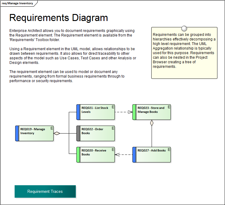 The Specification Manager can be used in conjunction with a platform of other tools such diagrams, the Traceability window and the Element Discussions facility.