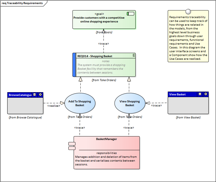 Requirements can be viewed in diagrams and related to other model elements creating compelling representations of traces between specifications and implementations.