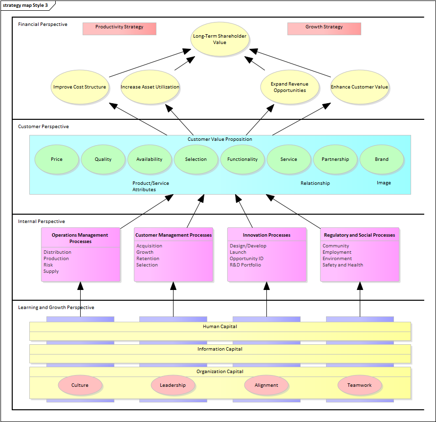 - Examine the two additional Patterns in order to see the layout of each alternative Strategy Map example