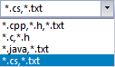 The Search File Types field. Click on the drop-down arrow and select the file types (file extensions) to search. |