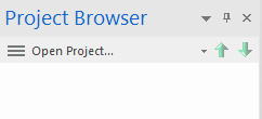When you first open Enterprise Architect with no project selected, the Project Browser button has the name 'Open Project'.