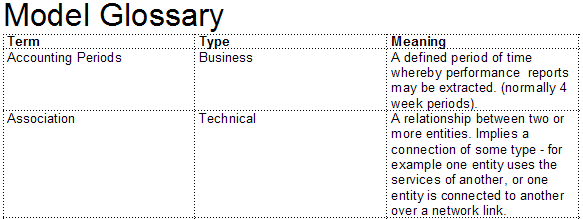 For example, you might set up the Model > Glossary > section as a section table, using the table definition: