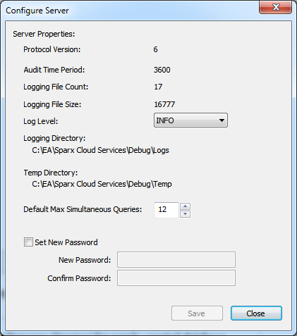 The Configure Server screen displays when you click on the 'Server Options' button on the Main screen. It helps you to configure the global options applied to the Cloud Server. Each of these options can also be set in the configuration file; however, the service does not require a restart if the options are changed using this screen.