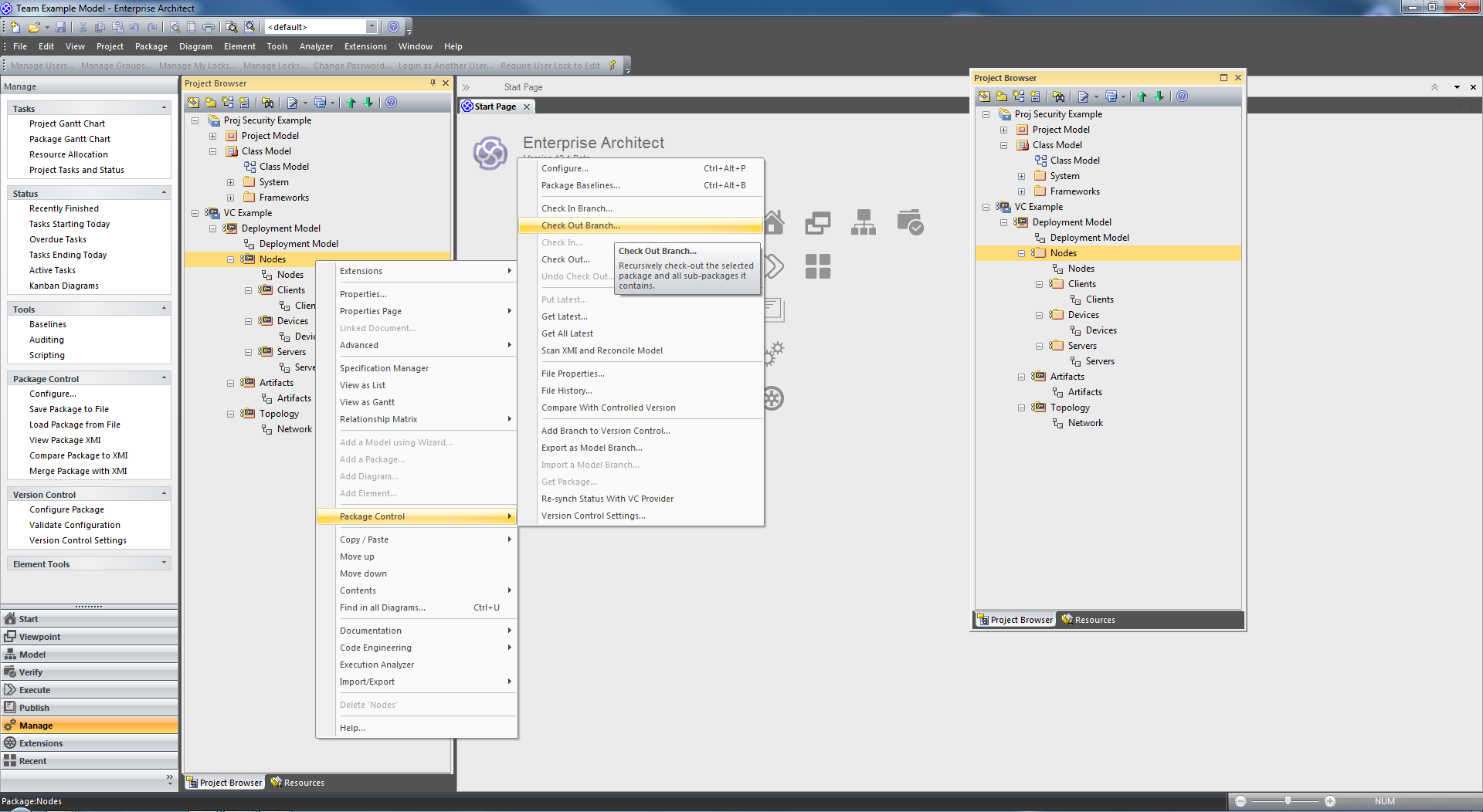 Within Enterprise Architect, you can manage changes to and revisions of your projects by placing individual model Packages, view nodes or root nodes under version control. Version control provides numerous key facilities, including: