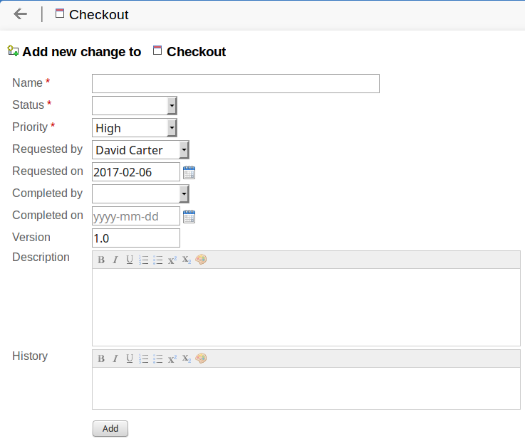 Type in a version number or letter to indicate any evolution of the same change. Generally, '1.0' indicates the first instance of a change. |