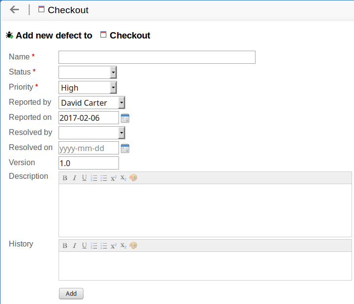 Click on the drop-down arrow and select the name of the person reporting the defect. |