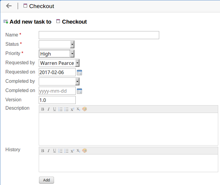 Click on the drop-down arrow and select the name of the person requesting the task. This defaults to the name selected for the previous record. |