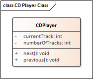 A Class CDPlayer is defined with two attributes: currentTrack and numberOfTracks.