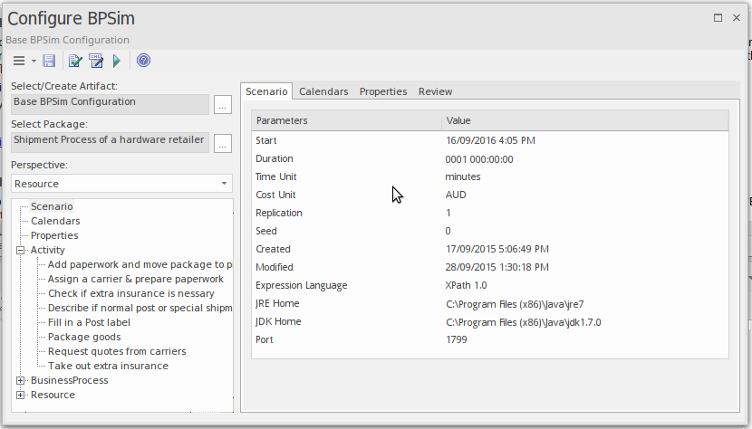 - Select the defined 'Resource' element in the BPSim Configuration, a diagram or the Project Browser.