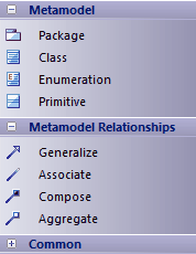 The Metamodel Toolbox provides model elements for creating Metamodel diagrams.