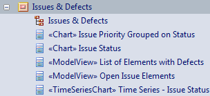 In this illustration, the 'Dashboard: Issue Elements & Defects' template has been selected from the Core Modeling technology. It generates a skeleton model in the Project Browser and a set of charts for reporting on Issues and Defects in the model, ready to key into your project structure.