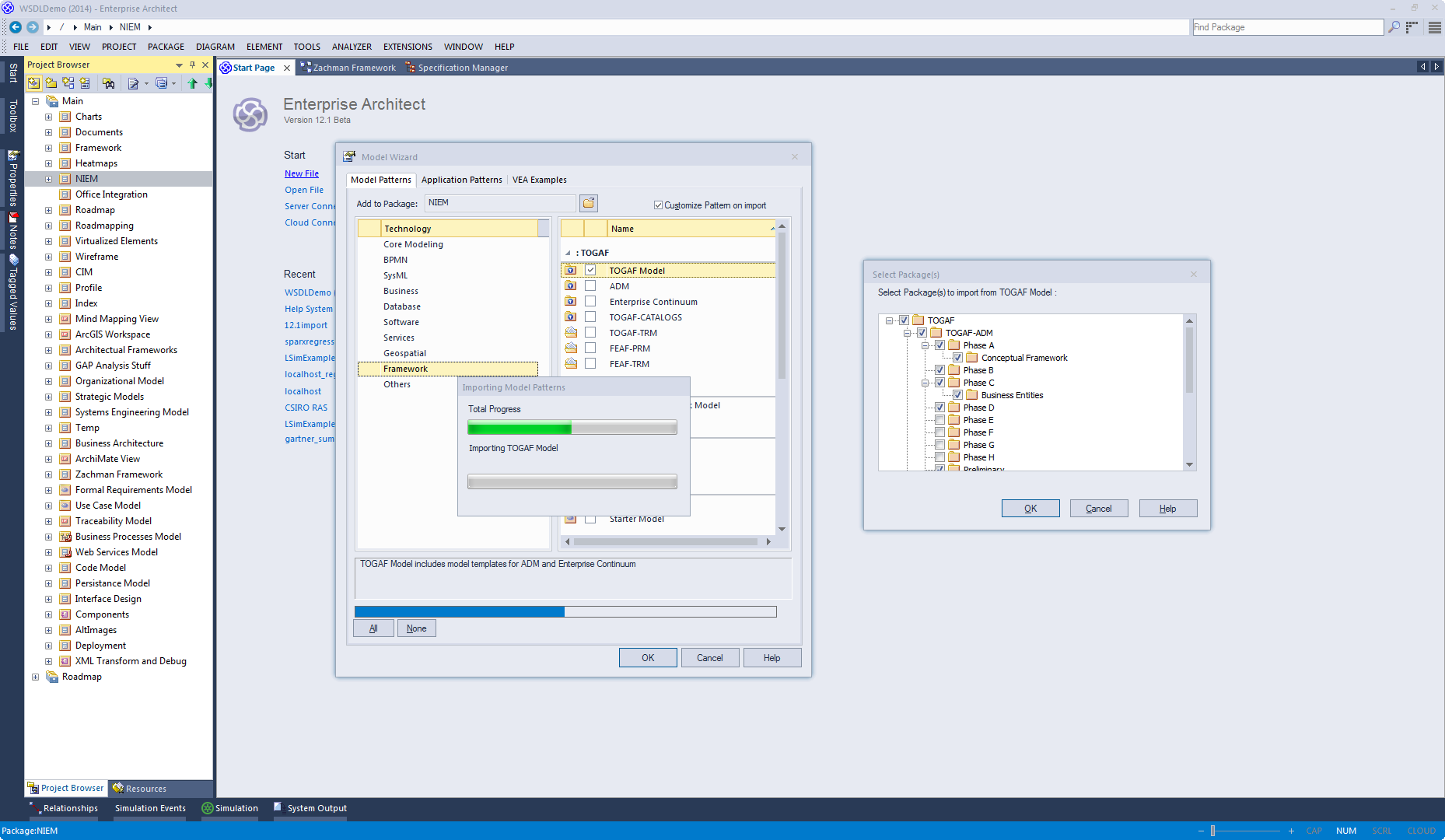 This is especially useful when setting up a new model with a reasonably complex structure, such as the TOGAF framework model. Being able to select which Packages are included and which are omitted is a good way to customize the level of implementation necessary for the current project.
