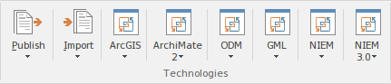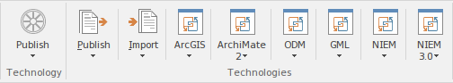 The 'Technology' panel provides a suite of facilities for creating and/or importing technologies for use within Enterprise Architect, and for generating Profiles and Patterns from the Packages and diagrams in your model, to help in modeling recurrent themes. |