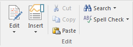 The 'Edit' panel provides a wide range of facilities for manipulating and checking the text within a document, and searching the content for specific text strings.