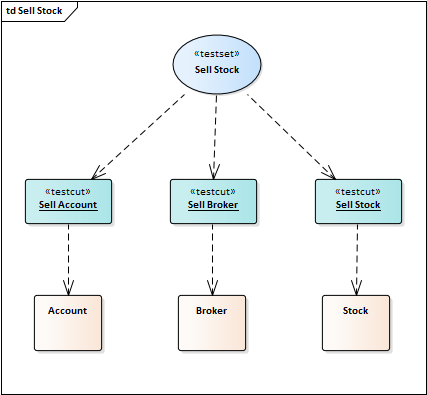 The Test Domain diagram is a dynamic medium where Testpoints are assembled to test Use Cases. Use Cases in a Test Domain diagram are provided in three different stereotypes: Test Cut, Test Set and Test Suite. Management of the domain is as easy as modeling on any diagram. The toolbox and shortcut menus provide access to any Test Domain Artifacts. In brief, Testpoints from multiple Classes are aggregated into Test Sets. Test Sets are then linked to form Test Suites. Both Test Cuts and Test Sets are re-usable assets. Linking the same Test Set to the one or more Test Suites is a matter of drawing connectors.