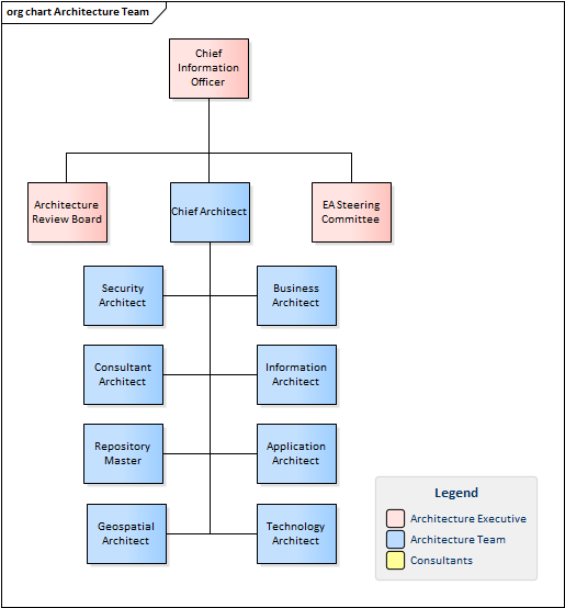The Chief Enterprise Architect is the leader of the Architecture team and needs to be a liaison between the executive level stakeholders, the line managers of the business units and the architects that make up the architecture team. This key person should possess all the skills of a Strategic thinker, Architecture Designer, Planner, Policy Manager, Systems Engineer, Diplomat and Communicator. The Chief Architect should have a strong command of the architecture framework and the Repository and be able to understand how to use the tool to create and manage the architectures, govern the implementation initiatives, and create visualizations that communicate how the architectures are moving the enterprise in the direction of its goals.