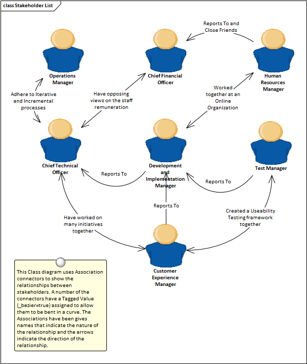 Many of the stakeholders will be managers or non technical staff who will benefit from viewing diagrams with graphics. Images from the standard Image Library could be used or an organization is free to create their own graphics to represent individual stakeholders or stakeholder groups.