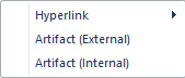 The Artifact can be created as an External or an Internal file. When a file or resource is dragged onto a diagram, a menu will prompt the user to select the type of Artifact to create: